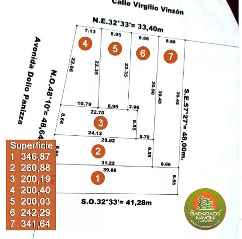 SIETE LOTES DE 200 A 240 M2 CON TODOS LOS SERVICIOS