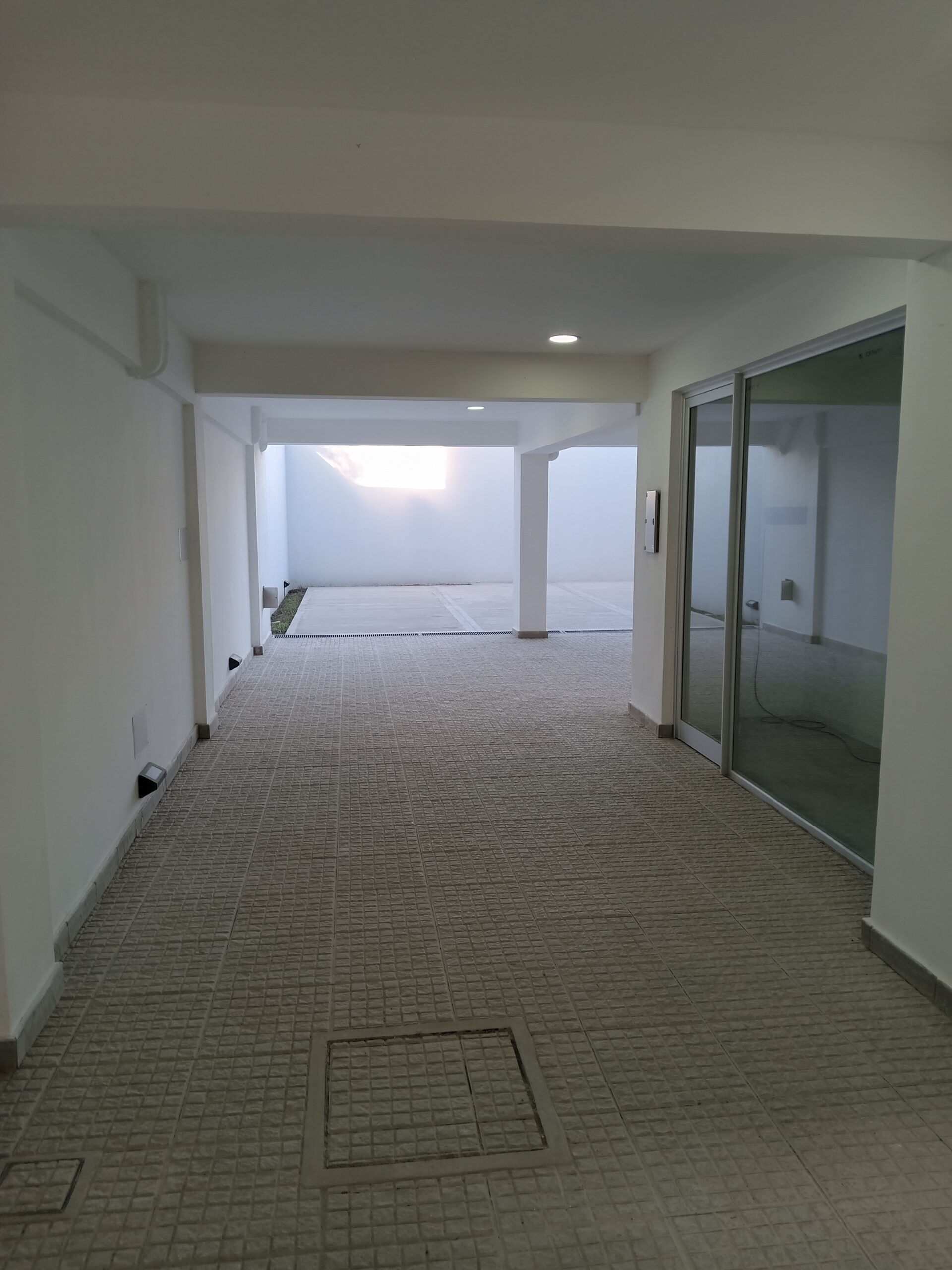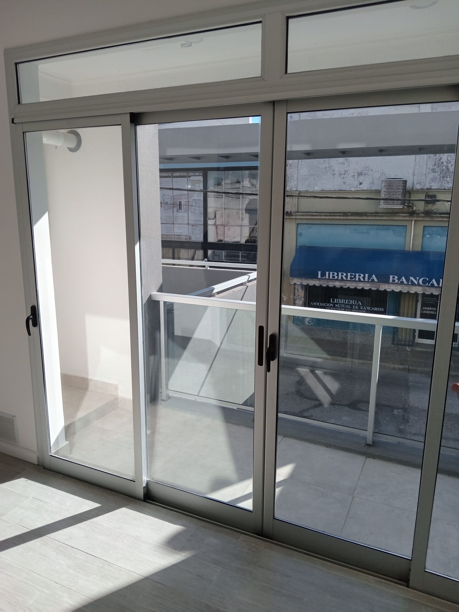 • Barandas de balcón de aluminio anodizado y vidrio laminado.