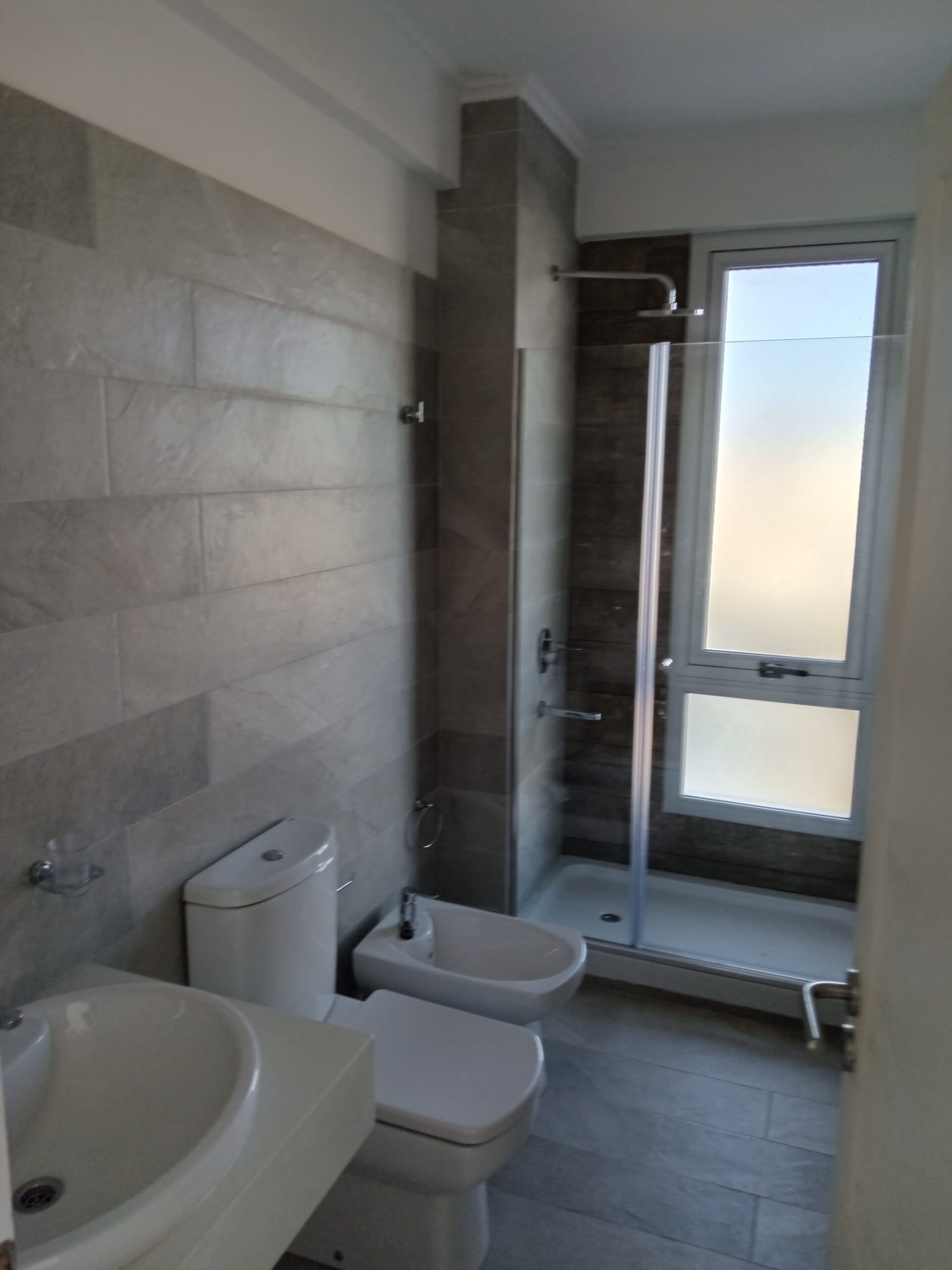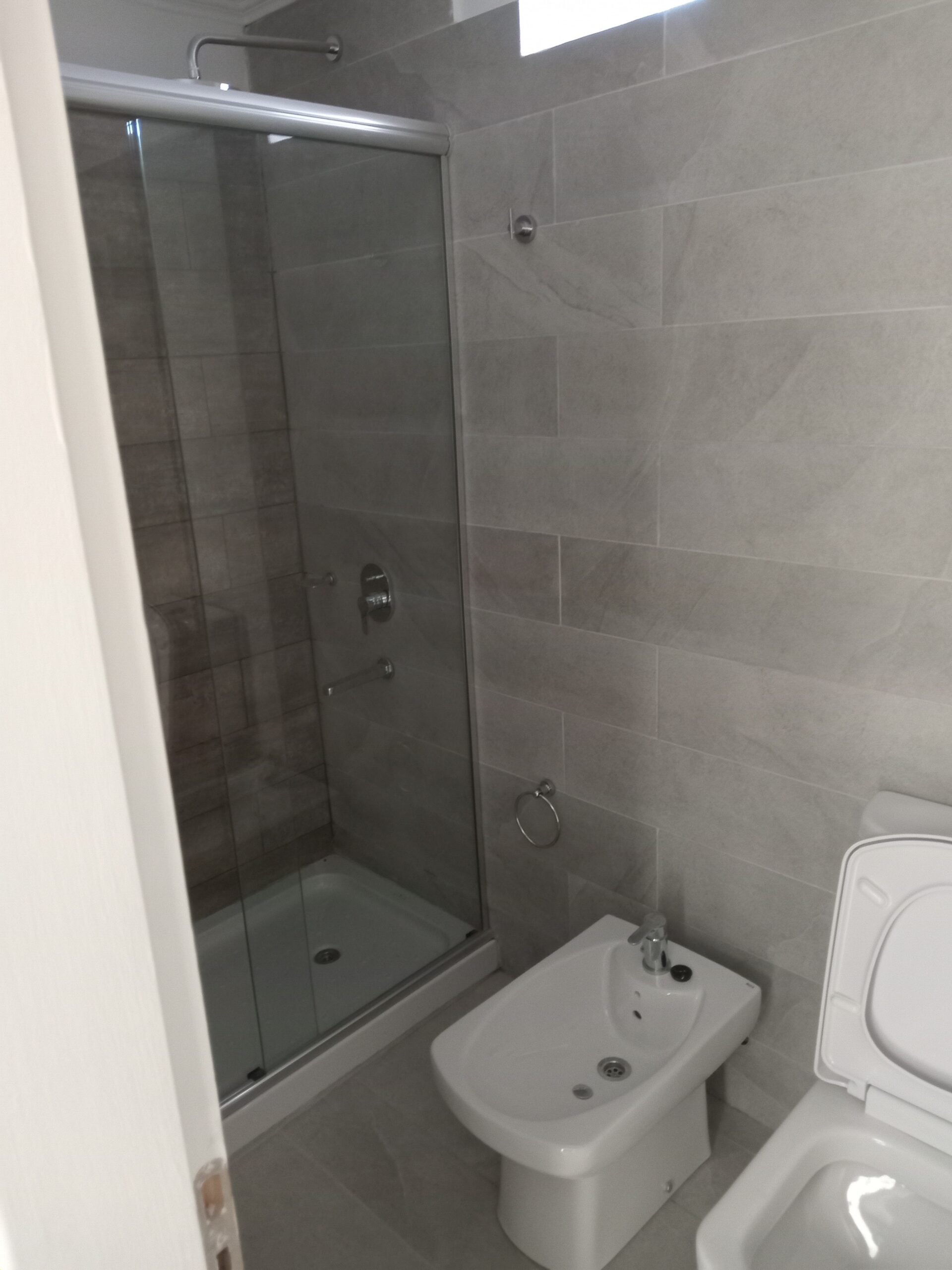 • Baños con piso y revestimiento en zona de duchas en porcelanato de primera