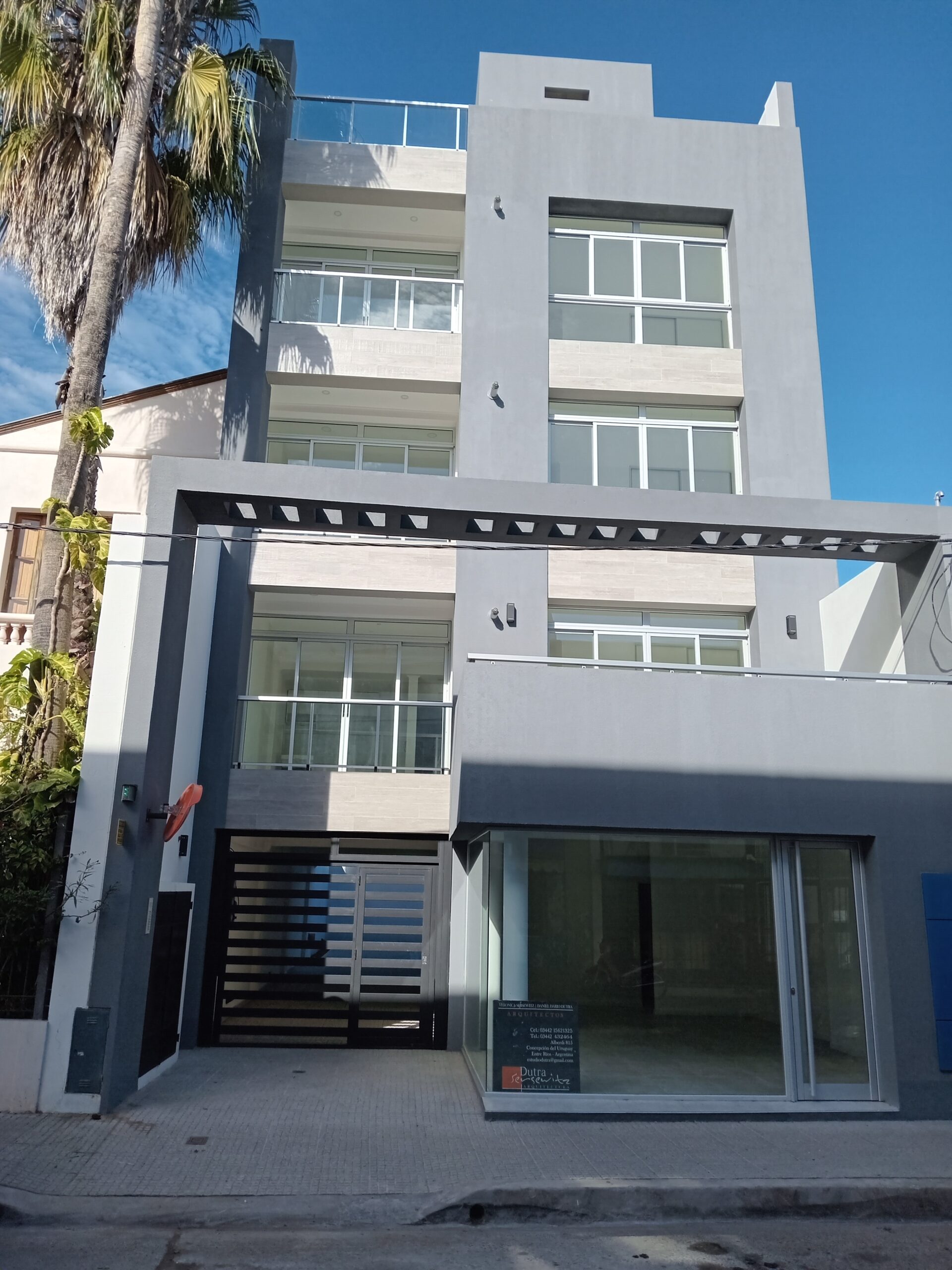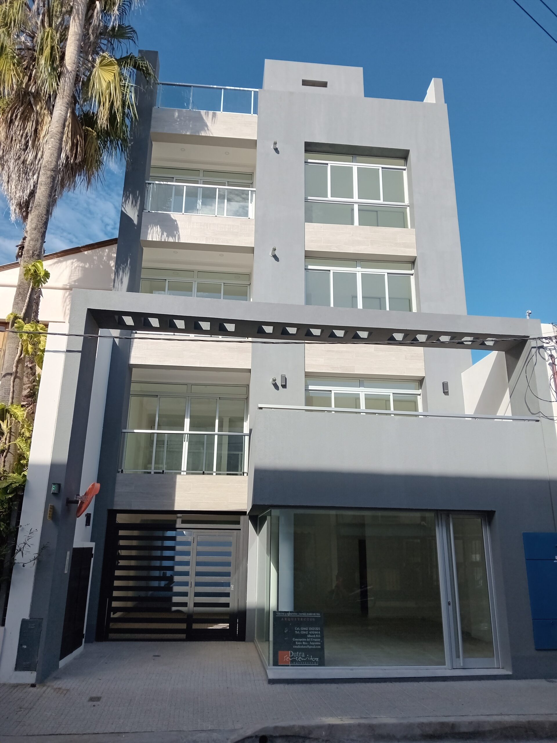 El edifico está compuesto por Planta Baja y 4 pisos. Acceso, cocheras, local comercial y